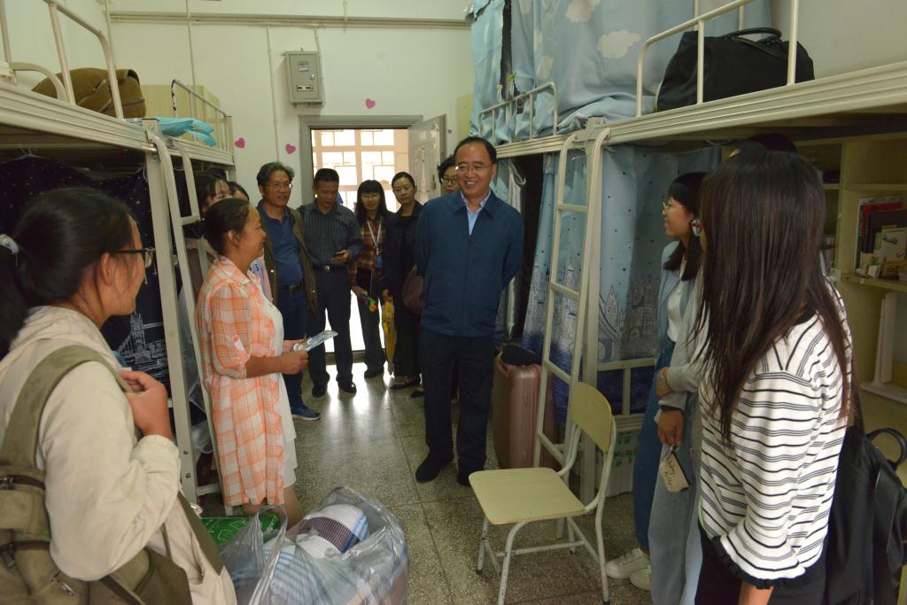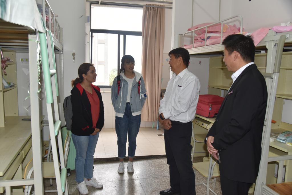 当天上午,校党委书记饶卫、校长蒋永文、校党委副书记李宏、副校长刘宗立以及各相关职能部门负责人分别来到华文学院、能源与环境科学学院、物理与电子信息学院、信息学院等迎新报到点和新生宿舍等地,与家长和新生亲切交谈,了解学生家庭情况,介绍学校基本情况,勉励学生努力学习。在学生宿舍,详细了解新生入住情况,叮嘱新生注意安全,遇到问题要及时向老师报告;考察了食堂安全、卫生及菜品情况,与新生及家长详细交谈,了解饮食习惯。同时,还慰问了各学院的辅导员和班主任,对他们工作表示肯定和感谢,要求认真组织好入学教育、做好学生管理工作。