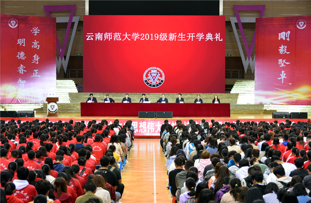 金秋时节,硕果累累。9月3日上午,kaiyuncom官方网站2019级新生开学典礼在呈贡主校区莲花体育馆举行。校党委书记饶卫,校党委副书记、校长蒋永文,校党委副书记李宏,副校长刘宗立,纪委书记王志刚,副校长武友德、刘坚、郝淑美出席开学典礼。到场参加典礼的还有各学院、各部门主要负责人,教师代表、2019级新生及家长代表。此外,24个分会场同步网络直播了开学典礼。典礼由校党委书记饶卫主持。