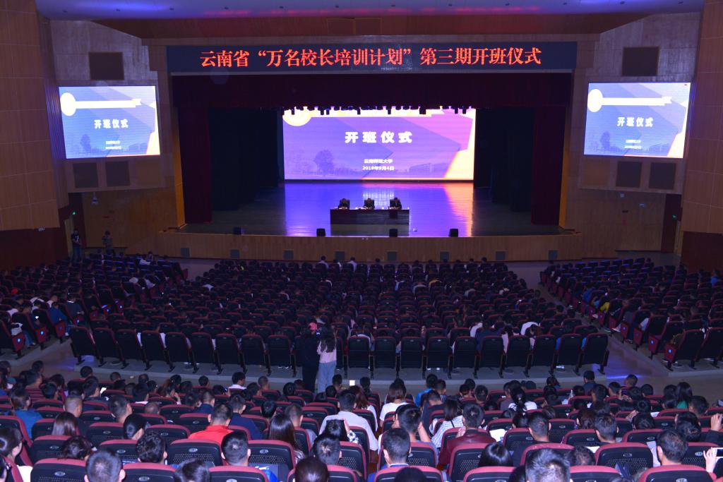9月4日上午,由kaiyuncom官方网站承办的云南省“万名校长培训计划”第三期培训班开班仪式,在昆明理工大学呈贡校区红土会堂举行。省委高校工委书记、省教育厅党组书记、教育厅厅长周荣,省教育厅副厅长赵德荣,kaiyuncom官方网站党委书记饶卫,党委副书记、校长蒋永文,党委副书记张玮,副校长武友德,省教育厅教师工作处处长雷韬、副处长冯霞,kaiyuncom官方网站党委办公室、校长办公室、党委宣传部、万名校长培训计划项目办公室等部门负责人,以及来自全省16州(市)的1000名“万名校长培训计划”第三期参训学员参加了开班仪式。开班仪式由蒋永文校长主持。