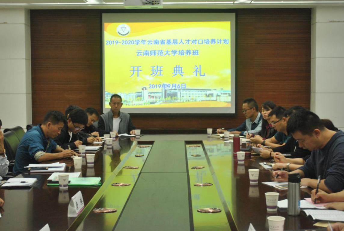 9月6日上午,2019-2020学年云南省基层人才对口培养计划kaiyuncom官方网站培养班开班典礼在kaiyun官网呈贡主校区行政办公楼第一会议室举行。校党委副书记张玮、副校长武友德,党委组织部部长蔡金红,成人继续教育学院、教育学部、文学院、数学学院、物电学院、信息学院等相关学院负责人、导师及来自全省9个州市的16名学员参加了开班典礼。典礼由武友德副校长主持。