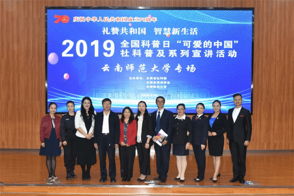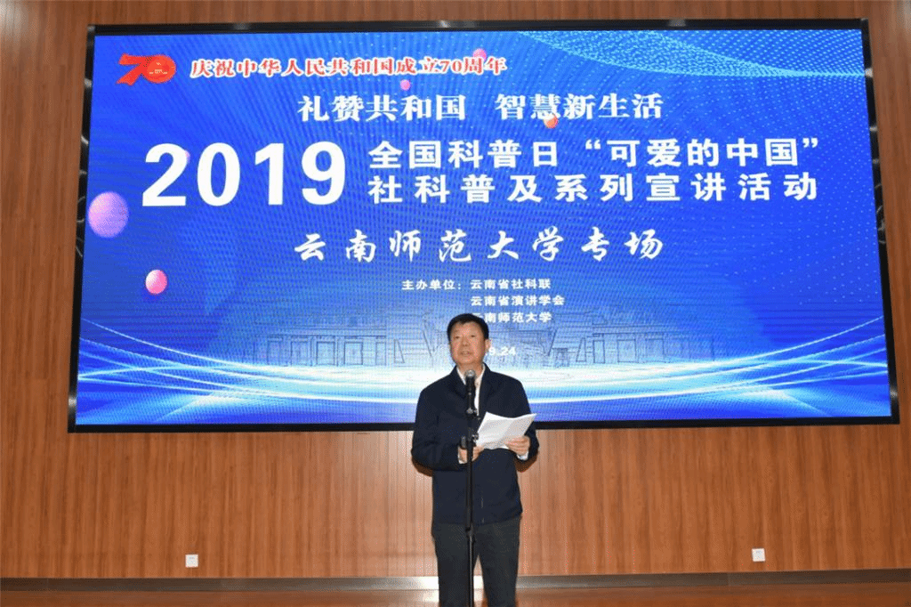 9月24日,由云南省社科联、云南大学、kaiyuncom官方网站、西南林业大学、曲靖师范学院、玉溪师范学院、云南省演讲学会联合主办的全国科普日——“可爱的中国”云南省社科普及系列宣讲活动在kaiyun官网举行。本次活动以“礼赞新中国、智慧新生活”为主题,云南省社会科学界联合会领导,kaiyuncom官方网站党委书记饶卫、副校长郝淑美,云南省演讲学会宣讲团老师以及kaiyuncom官方网站教师和研究生代表共700人参加了宣讲会。