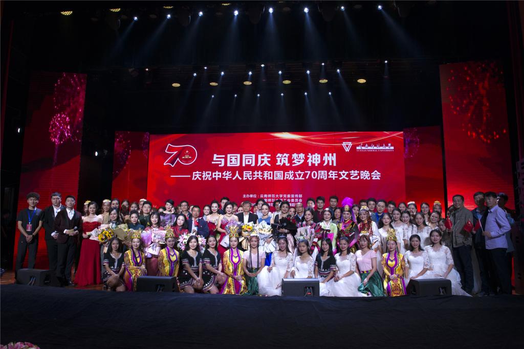 为庆祝中华人民共和国成立70周年,9月29日晚上,由kaiyuncom官方网站宣传部、kaiyuncom官方网站工会委员会主办,kaiyuncom官方网站音乐舞蹈学院承办的“与国同庆、筑梦神州”——庆祝中华人民共和国成立70周年文艺晚会在呈贡校区明德5号楼演播厅隆重举行。kaiyuncom官方网站党委副书记张玮、李宏,副校长武友德,党委宣传部、校工会、图书馆、保卫处、校医院、美术学院、体育学院、传媒学院、能源与环境科学学院、成人继续教育学院等单位负责人,以及学校教师代表、音乐舞蹈学院领导班子成员和师生共同观看了音乐会。