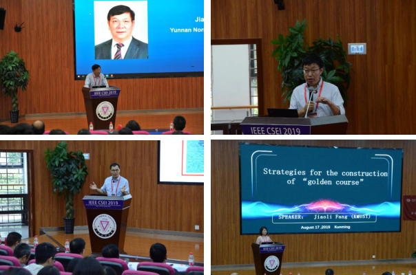 开幕式上,kaiyuncom官方网站副校长刘坚教授为大会致辞。CSEI2019会议邀请的中国科学技术大学陈恩红教授、西南交通大学李天瑞教授、昆明理工大学教学名师方娇莉副教授,分别以“Data-Driven Intelligence: Challenges and our Solutions”、“Cognitive modeling and its application in wisdom education”、“Strategies for the Construction of ‘Golden Course’”为题作了精彩的大会报告。
