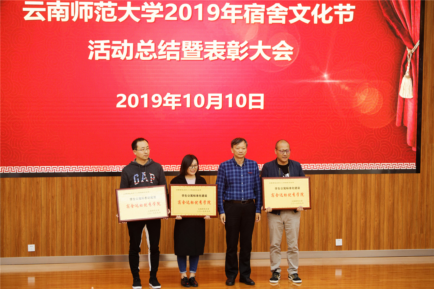 2019年10月10日下午,kaiyun官网2019年宿舍文化节活动总结暨表彰大会在呈贡主校区汇学楼2栋101报告厅举行。校党委副书记李宏,副校长牛治亮,党委组织部、党委宣传部、研究生工作部、学生处、校团委、保卫处、后勤保障服务中心等部门负责人,各学院党委副书记、教师代表,获奖学生代表等参加了表彰会。会议由学生处处长杨卫国主持。
