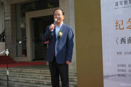 朱光磊教授致开幕辞。他指出,西南联大是南开大学非常重要的一段历史记忆,在南开大学建校100周年之际,走进西南联大遗址,举办“纪念南开大学建校100周年暨西南联大往事专题画展”,将南开大学在西南联大时期的历史人物和历史事件,以及西南联大在昆期间发生的重要事件,以油画形式进行再现,非常有意义。他代表南开大学感谢云南人民对南开大学的接纳和帮助,期望共同将这一段历史传承好,增进南开大学与云南师大的合作交流。