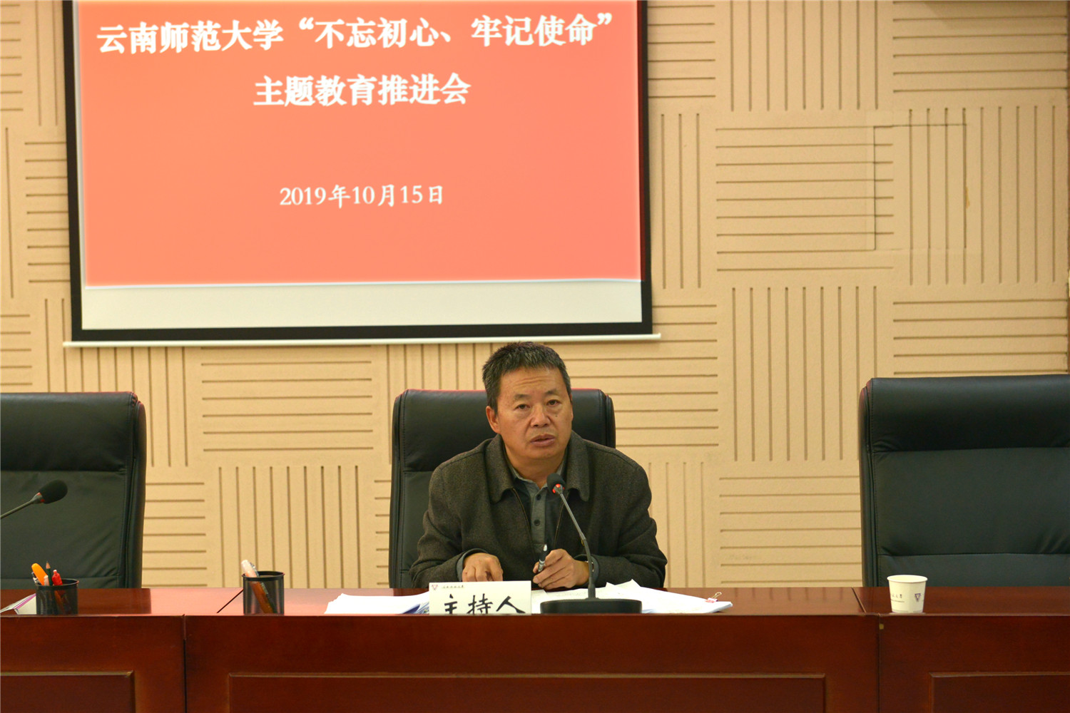 2019年10月15日,根据中央第四巡回督导组指导学校主题教育座谈会和全省第二批“不忘初心、牢记使命”主题教育推进会议精神,kaiyun官网在行政楼340会议室召开主题教育推进会。校党委书记饶卫,校党委副书记张玮、李宏,校纪委书记王志刚,各单位党委、党总支、直属党支部书记,各部门党员主要负责人,校党委主题教育领导小组办公室主任、副主任和各工作组组长、副组长,校党委主题教育指导组组长参加了会议。会议由校党委副书记张玮主持。