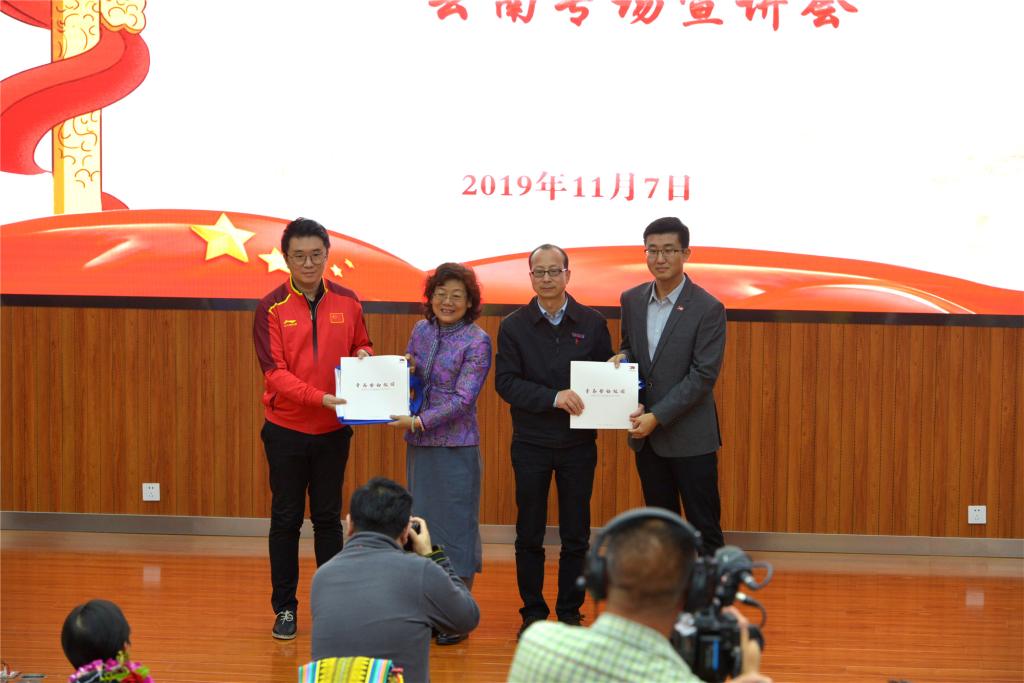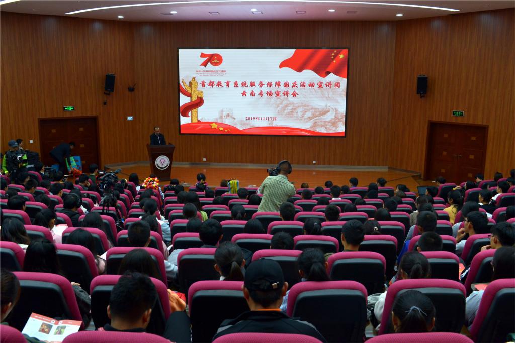 11月7日下午,首都教育系统服务保障国庆活动宣讲团云南专场宣讲会在kaiyuncom官方网站呈贡校区汇学楼报告厅举办。首都教育服务保障国庆活动赴云南省宣讲团团长、北京语言大学党委常委、副校长黄益方,云南省教育厅一级巡视员陶晴,首都高校服务保障国庆活动赴云南省宣讲团领队、北京语言大学党委学工部副部长张洋,北京语言大学港澳台办公室刘喆,首都师范大学团委副书记郭政,首都师范大学学生工作部(处)陈晨与来自北京语言大学、首都师范大学各个专业的宣讲团成员以及云南大学、云南民族大学、云南艺术学院等在昆10所高校共500余名师生参加了活动。