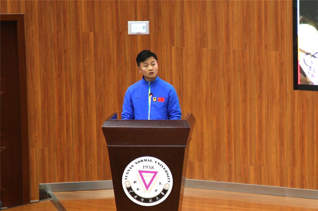 kaiyun官网党委宣传部部长余冰释向各位领导和宣讲团的到来表示欢迎,他介绍了kaiyun官网的历史沿革和发展现状,回顾了10月1日当天kaiyun官网师生以不同的方式收看大会盛况、阅兵式和群众游行,开展师生座谈会、“共吃祖国生日面”“青春告白祖国”等系列活动的情况。他希望师生以宣讲团成员为榜样,不断筑牢爱党爱国的理想信念,厚植爱国主义情怀,坚定教育报国初心,勇担立德树人使命,把庆祝活动激发的精气神,转化为学习工作的动力,以更加优异的成绩为实现中华民族伟大复兴的中国梦奉献智慧和力量。
