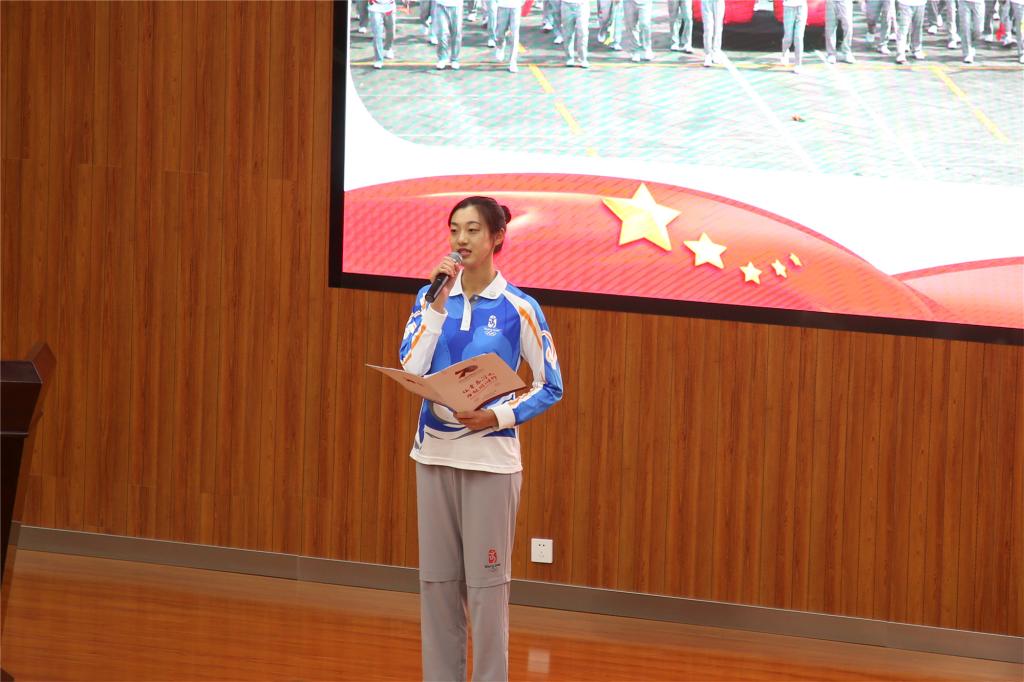 随后,宣讲团10位成员先后作了精彩的演讲,分享了他们在为国庆活动准备过程中的切身感受。来自首都师范大学外国语学院的张致远是退伍大学生和国庆群众游行“跨越世纪”方阵队列教练,他以《爱国是一场生动的实践》为题,讲述了在国庆活动中,士兵矢志不渝的爱国情怀、学子不忘初心的强国之志;来自北京语言大学商学院的唐诗琪以《爱国情怀无需多言,春风化雨浸润心田》为题进行宣讲,阐释了爱国主义教育无需多言,爱国是刻在每个人骨血里的,无论何时都不会被磨灭的情感;来自首都师范大学政法学院的刘鉴翔以《家·国》为题,讲述了“因爱家,所以饱含深情;因爱国,所以充满力量”的内心感受;来自北京语言大学外国语学部英语学院的刘诗朗作为在京读书的香港学子,怀饮水思源之心,以《我属于中国》为题展开演讲,用信念和热诚展现出了同胞青春活泼的朝气;来自首都师范大学音乐学院的丁超男是国庆广场合唱分指挥之一,她以《天安门前的21个背影》为题,生动讲述了她坚持指挥训练中付出的辛劳和收获的喜悦,她感慨:“挥舞手臂,仰望国旗,一次受阅,终身荣耀,砥砺追梦,不负韶华”;来自北京语言大学艺术学院的高子严以《我的祖国我的歌》为题,讲述了用青春和歌声向祖国致敬的故事,并在最后带领全场一同唱响了“我和我的祖国,一刻也不能分割”;“在我心里,三个月的集训时间每一秒都值得被铭记,每一份付出都值得被肯定”,来自首都师范大学文学院的陈琛以《每一秒都值得被铭记》为题,与大家分享了健美操运动员光鲜亮丽背后的千锤百炼; “再小的螺丝钉都有它的作用,它会在需要它的地方发光发热”,来自北京语言大学语言科学院的庞镕榕作为志愿者领队,以《每一个你都无比珍贵》为题,向大家阐释了平凡的志愿者不平凡的奉献;来自首都师范大学音乐学院舞蹈系的杨贤将大学生退伍士兵的刚毅、勇敢、作战状态等形象融入到自己的舞蹈专业之中,为全国武警战士文艺汇演创作了优秀的剧目。他以《祖国,我向您报到》为题讲述以青春之我、奋斗之我报效祖国的情怀;来自北京语言大学人文社会科学学部新闻传播学院的李木子在群众游行“圆梦奥运”方阵中担任了第一排把控队伍中线的重任,她以《为了你,一切都是值得》为题,表达了用青春的力量奉献祖国美好未来的初心。