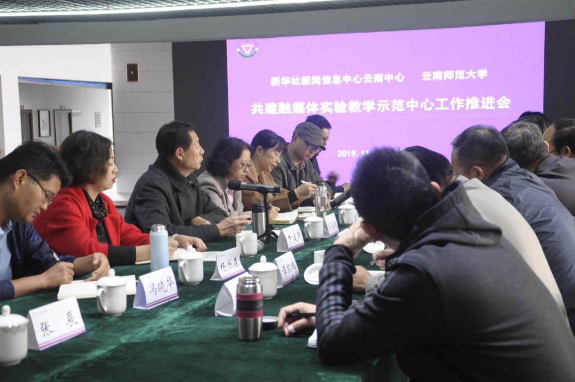 2019年11月8日下午,由新华社新闻信息中心云南中心和kaiyuncom官方网站联合召开的县级融媒体实验教学示范中心工作推进会在传媒学院大厅举行。会议由传媒学院院长熊永翔主持,参加会议的有新华社新闻信息中心副主任鲁晓艳,编委会副主任谭熙鹏,技术总监叶勤,技术员谢开红,kaiyun官网党委副书记李宏,副校长武友德,教务处处长陈新,信息管理处副处长刘江涛,传媒学院副院长周芸、牛凌燕以及各系教师代表。会议围绕传媒学院与新华社建设县级融媒体实验教学示范中心的具体工作展开研讨和论证。