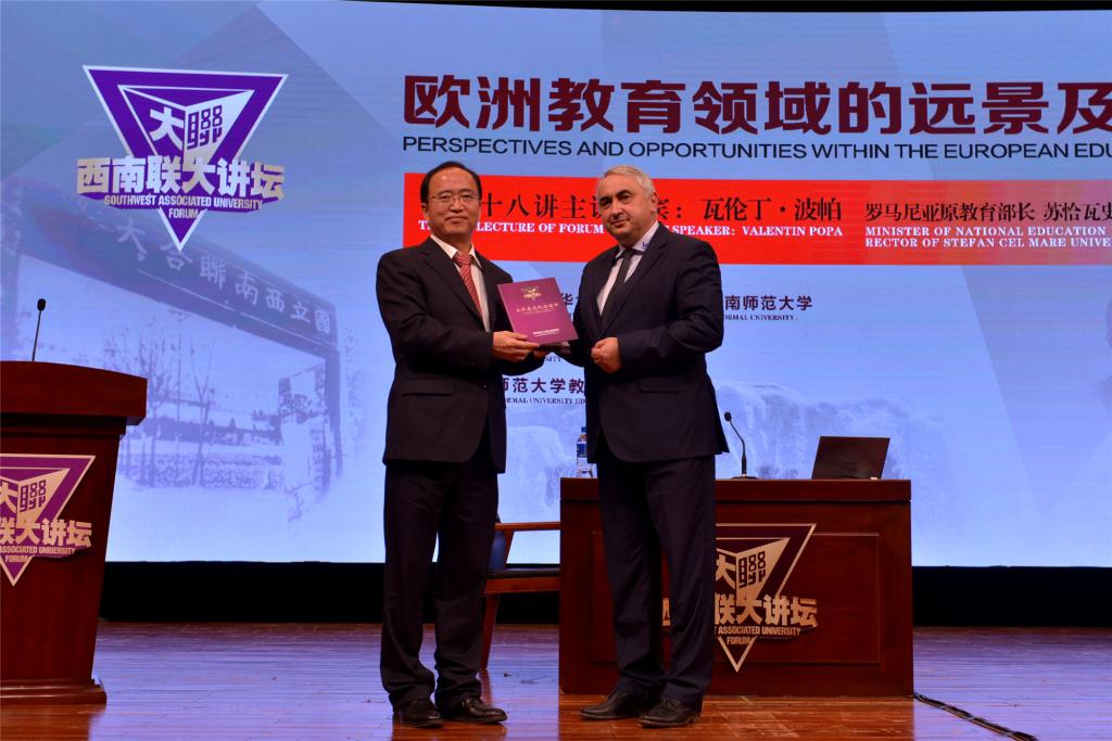 瓦伦丁·波帕教授表示很乐意成为两个学校、两个国家合作的机遇,也欢迎更多的中国学子去罗马尼亚,去苏恰瓦史蒂芬大帝大学进行交流学习。最后,他引用中国圣人孔子的名言“知者不惑,仁者不忧,勇者不惧”结束了演讲。