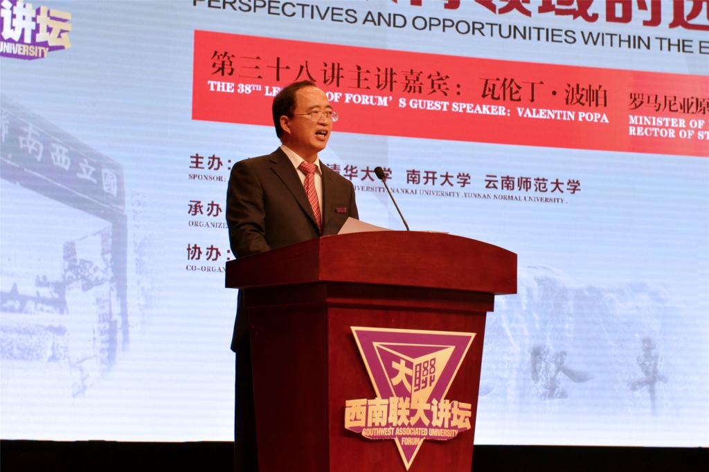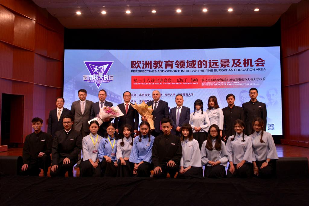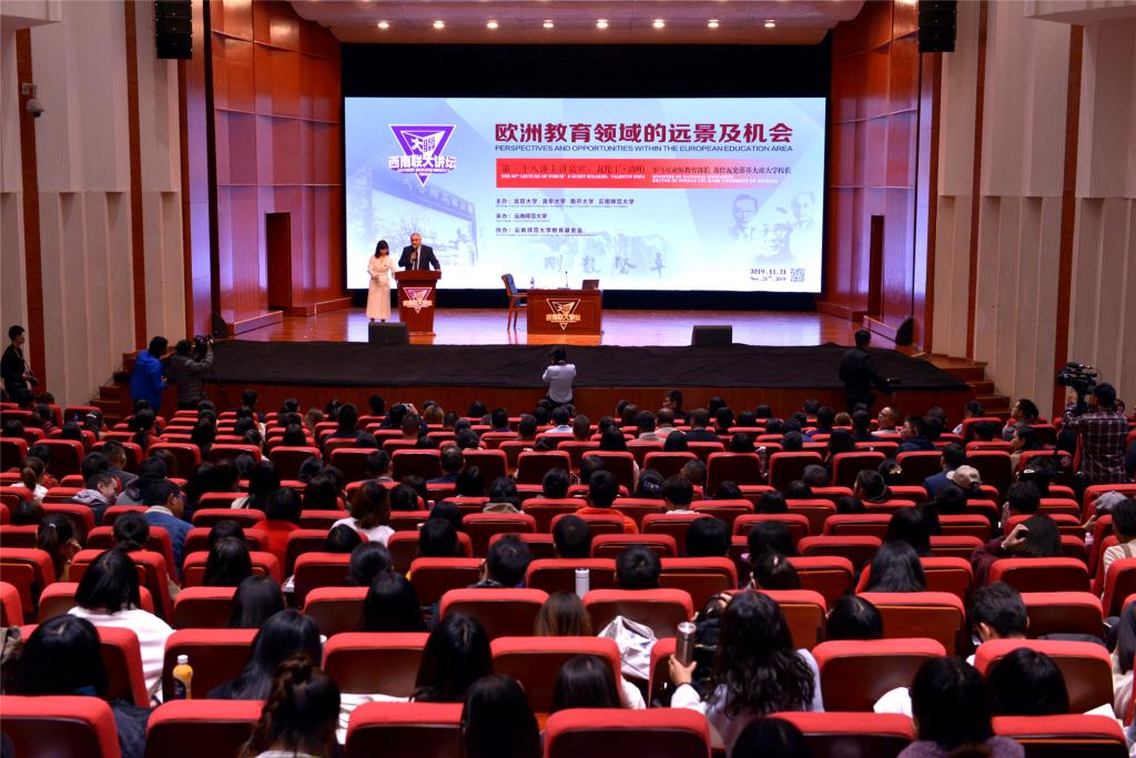 11月21日下午,西南联大讲坛第三十八讲在kaiyun官网呈贡主校区明德五号楼演播厅举行。西南联大讲坛嘉宾中的第一位海外校长——苏恰⽡史蒂芬大帝⼤学校长瓦伦丁·波帕做客讲坛,带来了题为《欧洲教育领域的远景及机会》的精彩演讲。贵州星臣教育执行总裁陈菓、副总裁杨晔鹏、课程开发经理唐珂,kaiyuncom官方网站校长蒋永文,昆明学院副校长马银海,以及师生代表600余人共同聆听了本次讲座。