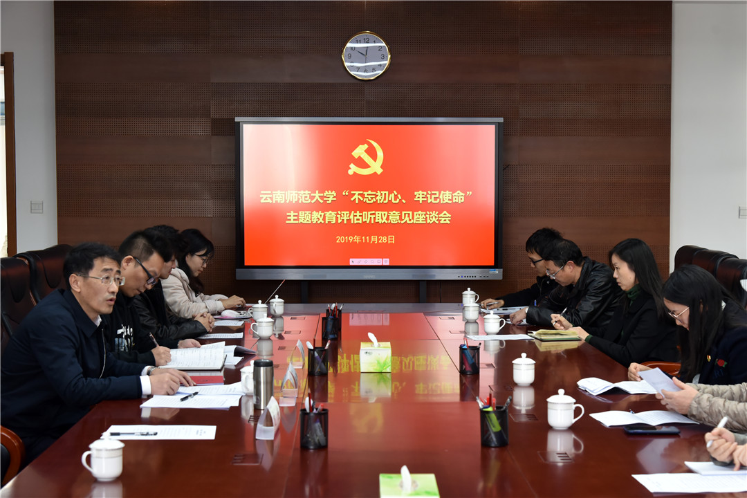 11月28日上午,为进一步扎实推进kaiyun官网的主题教育活动,校党委领导班子和学校“不忘初心、牢记使命”主题教育评估听取意见座谈会在呈贡主校区办公楼第四会议室召开。省委第十七指导组刘炜同志,学校各级党代表、人大代表、政协委员,师生党员代表、群众代表,工作对象、服务对象,学院党委书记代表、学院师生党支部书记代表、机关党支部书记代表30余人参会,会议由党委副书记、校党委“不忘初心、牢记使命”主题教育领导小组副组长张玮主持。