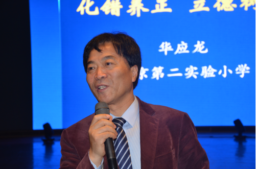 华应龙老师从袁隆平的故事和自己的经历谈起,指出:“成功的人高明在哪?”,并不是他们先知先觉、一惯正确,而是他们有一个对待错误的正确态度,有一个肯于思索的头脑,有一双善于发现错误的眼睛。讲座中详细地回答了“什么是化错?为什么化错?教师怎样才能化错?”等一系列问题。在讲座中,华老师指出,化错的要义在于教学过程中随机融入、自然生成,而不是事先刻意安排。教师要敏锐发现差错背后的意义,揭示其内在的矛盾,巧妙的彰显其积极意义,而不是简单地否定学生的错误;要把课堂教学中的差错融化为一种教学资源,化腐朽为神奇,变事故为故事。在“为什么化错”这一环节,华应龙老师指出,有差错才有真正的学习,才有实质性的活动发生。在“教师怎样化错”环节,他提出,通过化错,在获得正确认识的同时,养成积极的思维习惯、阳光的人生态度,实现通过化错达到立德树人的教育目标。华老师用一句句寓意深刻的话给学员们带来了深深的思考:“教书的人不读书是一件可悲的事”、“错若化开,成长自来”、“理想的课堂应当不仅传授知识,还要启迪智慧,更要点化生命”。