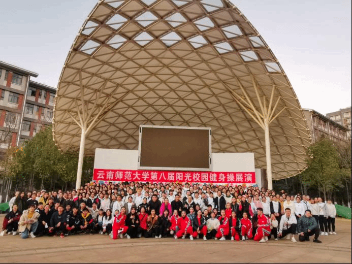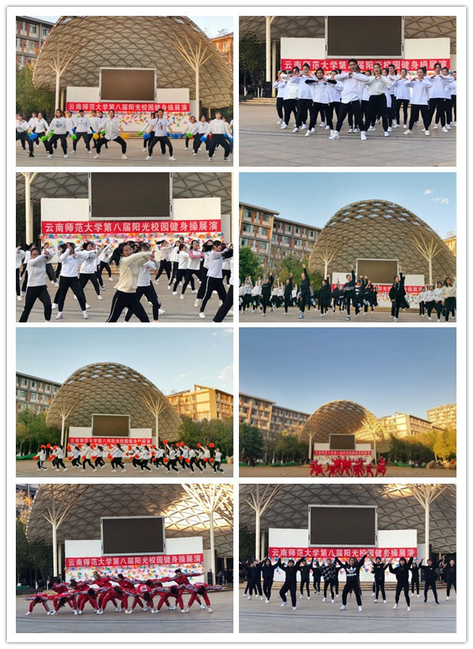 2019年12月19日下午,由学生工作处承办,体育学院协办的课外素质教育活动----第八届阳光健身操汇报展演在kaiyuncom官方网站呈贡校区东区贝壳广场举行。kaiyuncom官方网站学生处和体育学院相关老师以及各学院同学们到场观看了汇报展演。本次展演吸引了来自传媒学院、经管学院、文学院、华文学院、体育学院等14个学院近600余名阳光健身操爱好者参加。