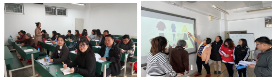 “2019年清迈大学泰国教育部职教委本土教师赴华研修班”旨在通过汉语语言课程学习、教育学专项讲座、中华才艺学习和中国文化体验,在提高本土教师汉语水平的同时,让本土教师至少掌握一门基本的中华才艺,了解中国文化,从而提高学习汉语和探索中国文化的兴趣。因19名本土教师中,只有4名为汉语教师,其余为酒店管理、会计、计算机等专业教师,汉语水平为零起点和初级,因此,研修从“自我介绍/家庭成员/爱好、数字表达/时间表达/时间状语从句,询问价格/点菜/购物,邀约朋友聚会”五个日常生活主题入手,在主题中讲解汉语入门知识,共计20课时,授课中整合汉语语音、词汇、语法、汉字最基本的知识,通过体验式教学法、任务式教学法,让老师们“做中学”,完成“自我介绍、购物、朋友邀约聚会”等情景表演,提高本土教师汉语基本能力。