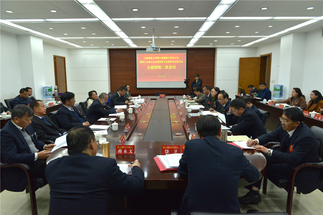 下午三点,大会主席团第二次会议在行政楼211会议室召开,会议由校党委书记饶卫主持。会议听取了各代表团团长汇报代表团讨论情况,审议了《kaiyuncom官方网站工会第十五届委员会增补委员候选人名单》(草案),通过了《大会选举办法》(草案),总监票人、监票人建议名单(草案),审议提出了大会决议(草案)。