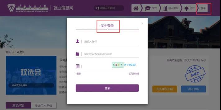 点击首页上的“双选会”,自行注册账号或直接登录。