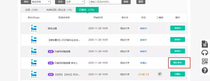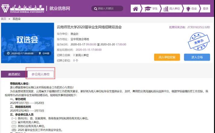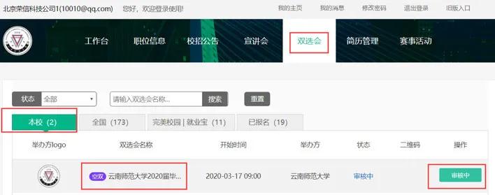 点击页面导航栏中【双选会】模块,报名参加双选会,等待审核。