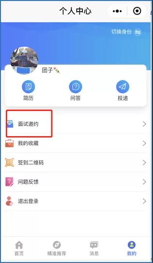 登录个人中心->面试邀约,手机端开始面试。