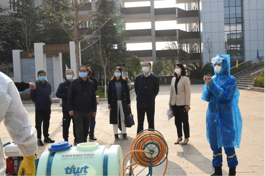 3月18日上午,校长蒋永文,校党委副书记李宏,副校长刘宗立、丁文丽、牛治亮,党委委员、校长助理乜勇以及校办、研究生部、学生工作部、保卫处、资产处、基础教育集团、后勤保障服务中心、校医院等部门负责人先后到kaiyuncom官方网站附属中学(呈贡校区)、校医院、宿舍、食堂等调研检查,召开疫情防控工作现场办公会,了解安排布置疫情防控工作。