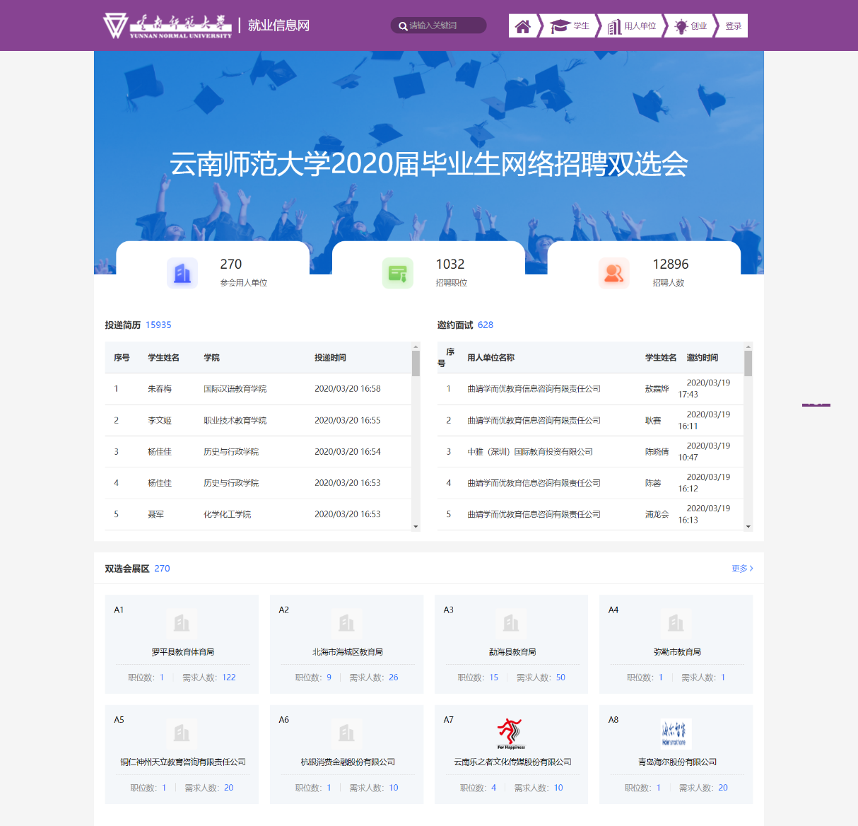 为深入贯彻落实党中央、国务院有关高校毕业生就业的决策部署,落实云南省委省政府的工作要求,在云南省教育厅的精心指导下,kaiyun官网就业处于3月17-20日联合举办了kaiyuncom官方网站2020年毕业生网络招聘双选会。