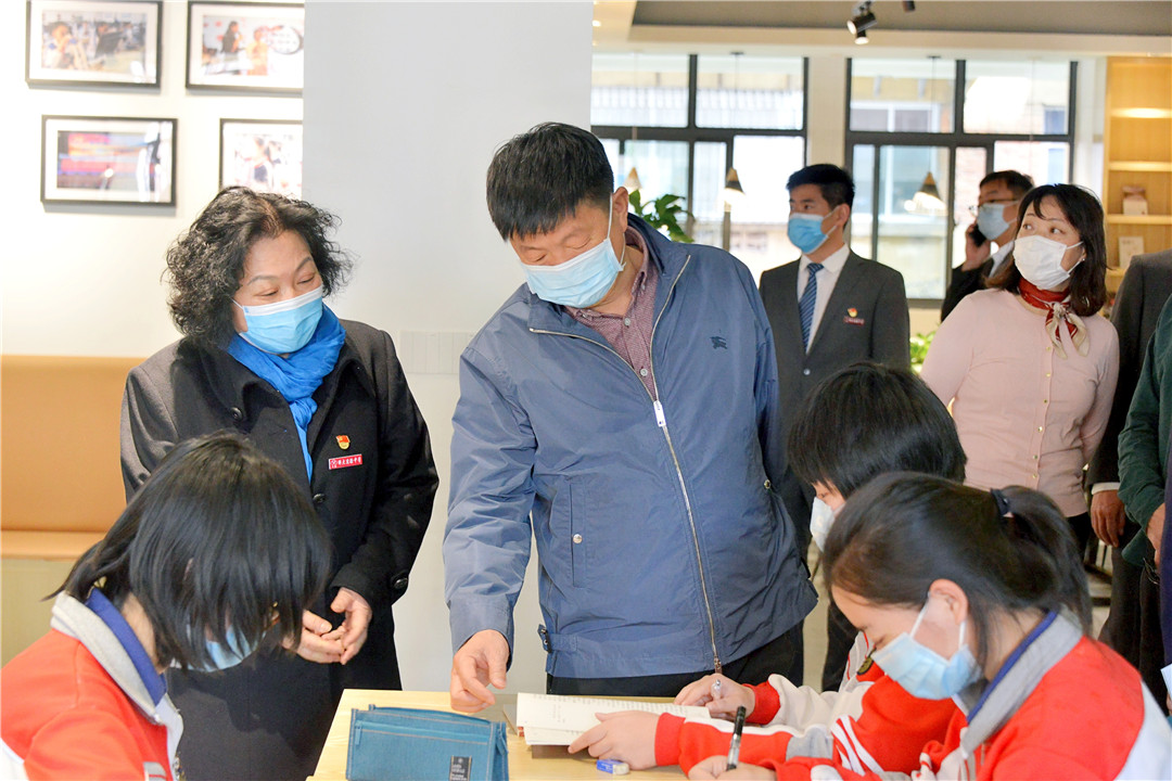 实验中学经过近两年时间完成了校本部校园提升改造工程。饶卫书记一行实地考察了学校图书馆、心理健康服务中心、大礼堂、实验室、音乐教室、教学楼、诚信小店、教职工食堂等公共区域,并来到初三年级8班教室,了解师生的校园防疫和开学情况,叮嘱师生一定要注意身体健康,做到科学防疫,勉励大家在优美的校园环境中好好学习、认真工作,取得更大的进步。