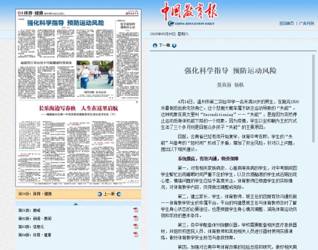 近期,在全国范围内出现了体育教学中学生猝死及其它教学安全事故,引起了社会的广泛关注,也牵动着云南体育科研工作者的心。2020年5月9日,《中国教育报》在体育·健康版头条刊发了kaiyun官网体育学院聂真新教授团队撰写的《强化科学指导 预防运动风险》一文。文章针对目前已经出现的重大体育教学事故,分析了根源性问题,提出了应对方案和具体的体育教学行为措施,体现了kaiyun官网体育人在后疫情时期的高度社会责任感与体育科学的专业素养,对复课后的体育教学、训练、考试具有重要的指导价值。