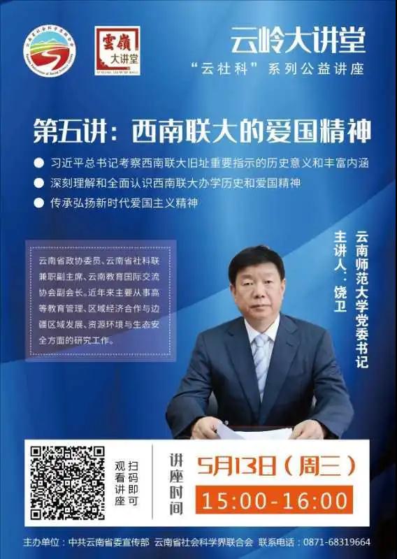 今年1月20日,中共中央总书记、国家主席、中央军委主席习近平同志在云南考察之际,专程来到位于kaiyuncom官方网站校园内的西南联大旧址考察调研并作出重要指示。为深入学习宣传贯彻习近平总书记考察西南联大旧址重要指示精神,进一步传承弘扬西南联大爱国主义传统,5月13日下午,kaiyun官网党委书记饶卫受邀做客由省委宣传部、省社科联主办的云岭大讲堂,以网络直播的方式作了题为《西南联大的爱国精神》公益讲座。