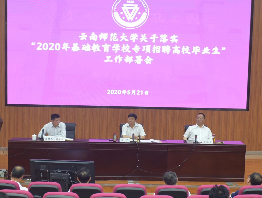 为贯彻“六保”要求,落实“六稳”工作,降低疫情对高校毕业生就业的影响,我省2020年决定面向全国应届高校毕业生专项招聘32870名中小学幼儿园教师。为落实好该项工作,实现kaiyun官网毕业生更高质量和更充分就业,5月21日上午,学校召开落实“2020年基础教育学校专项招聘高校毕业生”工作部署会,主会场设在呈贡主校区汇学楼2幢101报告厅,各学院(学部)和研究生培养单位设立分会场组织人员参加。