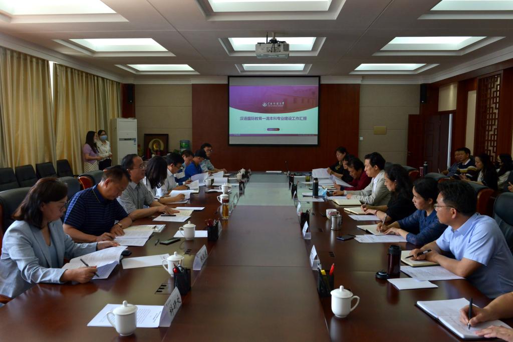 国际汉语教育学院王秀成院长从汉语国际教育专业特色与优势、专业建设现状与目标任务、专业建设差距与困难等方面汇报了汉语国际教育一流专业建设的基本情况,并从专业建设发展规划、专业建设提升举措、政策支持等方面提出了初步的规划思路。