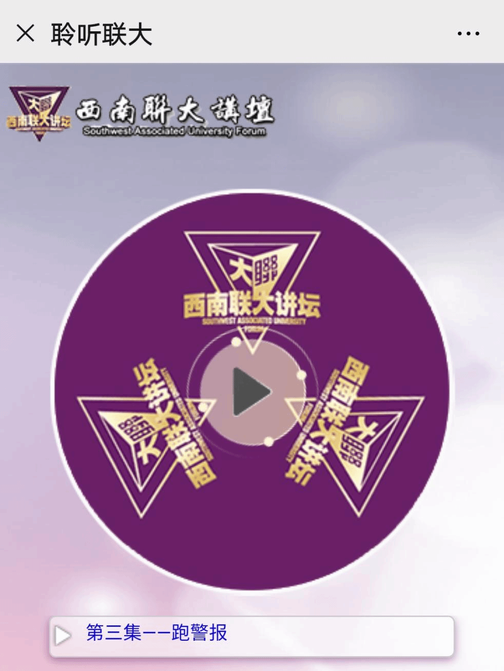 1、微信搜索公众号:西南联大讲坛——点击进入“聆听联大”栏目即可;