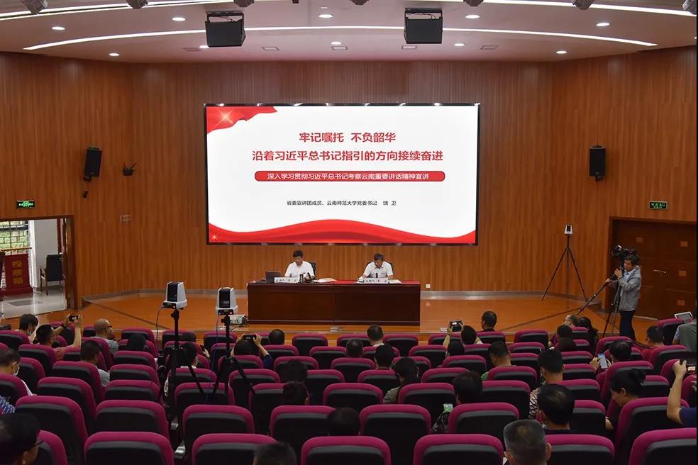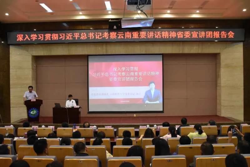 为进一步学习宣传贯彻习近平总书记考察云南重要讲话精神,更好地引导广大师生干部群众把思想和行动统一到重要讲话精神上来,坚定不移推动云南高质量发展,按照省委、省委教育工委、省教育厅的统一安排部署,7月7日下午、7月8日下午和7月9日下午,省委宣讲团成员、kaiyun官网党委书记饶卫分别在kaiyuncom官方网站文理学院、kaiyuncom官方网站呈贡校区、云南中医药大学,进行深入学习贯彻习近平总书记考察云南重要讲话精神宣讲。现场师生代表还就报告内容,结合工作、学习实际,与饶卫书记进行现场互动交流。