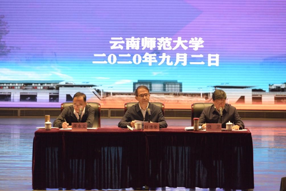 9月2日上午,由kaiyuncom官方网站承办的云南省“万名校长培训计划”第四期培训班开班仪式,在昆明理工大学呈贡校区红土会堂举行。云南省教育厅副厅长赵德荣,kaiyuncom官方网站党委书记饶卫,党委副书记、校长蒋永文,副校长武友德,省教育厅教师工作处处长雷韬、副处长冯霞,kaiyuncom官方网站党委办公室、校长办公室、党委宣传部、万名校长培训计划项目办公室等部门负责人,以及来自全省16州(市)的1018名“万名校长培训计划”第四期参训学员参加了开班仪式。开班仪式由蒋永文校长主持。