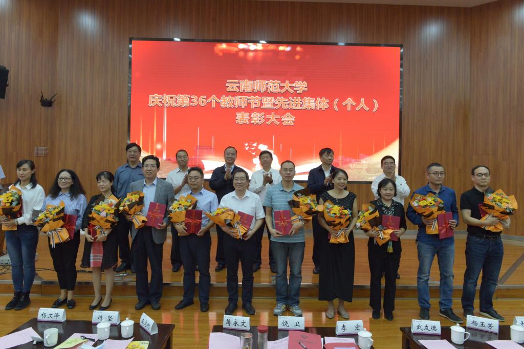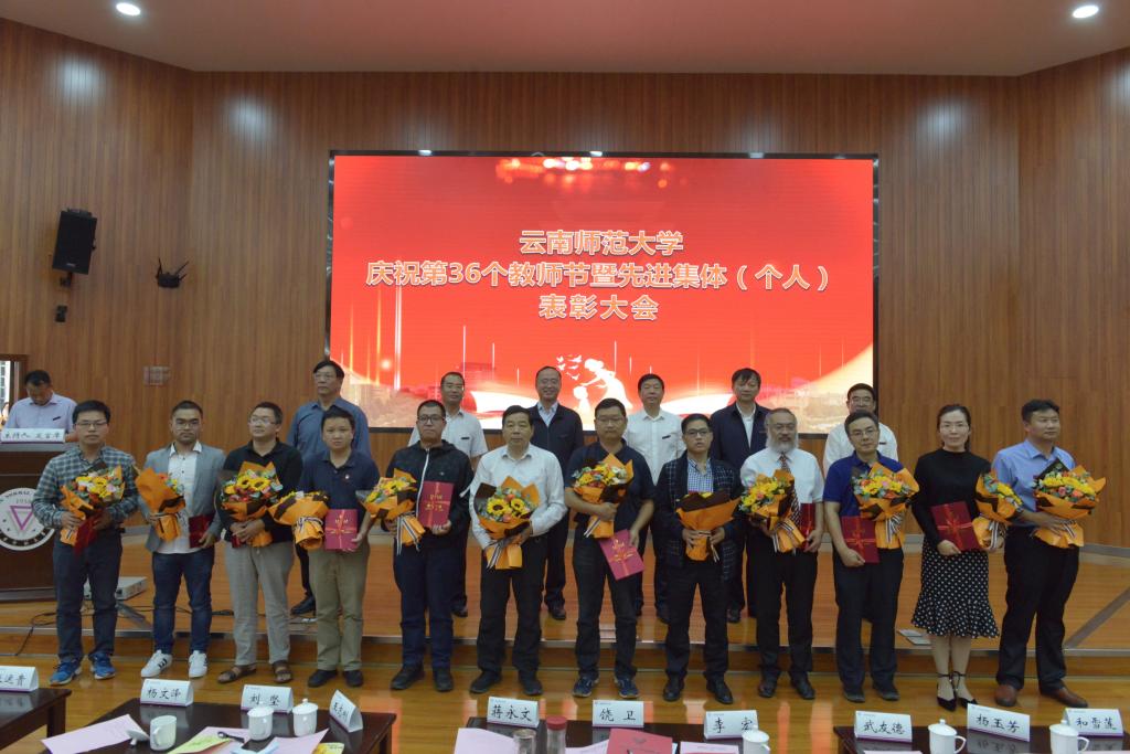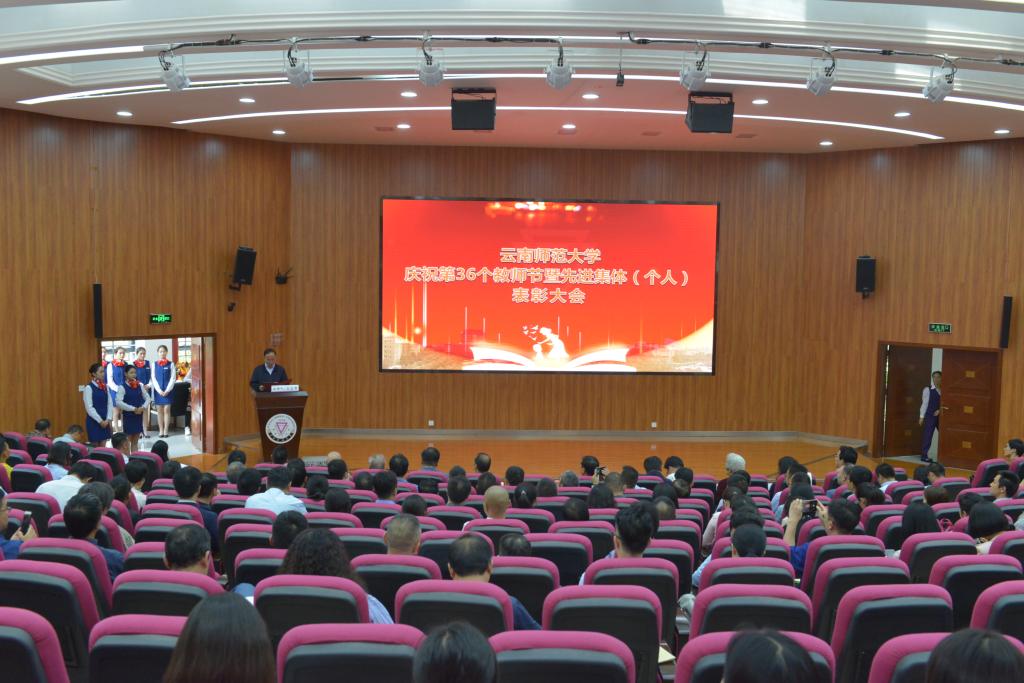 在第36个教师节到来之际,kaiyuncom官方网站庆祝第36个教师节暨先进集体(个人)表彰大会在呈贡主校区汇学楼报告厅举行。校领导班子成员,其他省管干部,高层次人才代表,各学院(学部)、各部门教师代表,扶贫一线教师代表,附属中小学及独立学院教师代表,离退休教师代表,各民主党派代表,万名校长培训班学员代表,2019-2020年度受表彰的先进集体(个人)代表,学生代表等200余人参加了大会。大会由安学斌副校长主持。