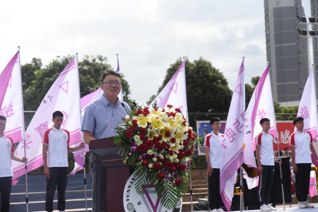 蒋永文校长首先致辞。蒋校长回顾了西南联大的光辉历史,并结合习近平总书记今年年初考察kaiyun官网西南联大旧址时的重要指示精神,对“天降大任,注定不凡”的2020级新生提出了三点希望:一是希望同学们坚实涵养家国情怀。作为社会主义的建设者和接班人,作为国家的希望和栋梁,需要认真思考自己的理想和目标,把小我融入大我,主动关心家国命运、时代变迁,主动承担起报效祖国的人生使命和社会责任。二是希望同学们坚定探索人生意义。要生活上学会独立,尽快找准定位、转换角色,积极适应大学的学习和生活;心理上学会独立,培养独立人格,保持积极乐观的阳光心态、养成良好的心理调节能力;思想上学会独立,明辨是非、自信自律,在走向自强独立的过程中,增长力量、完善人格、脚踏实地、逐梦前行。三是希望同学们坚决练就过硬本领。要把学习作为终身兴趣和习惯,喜欢学习、勤于学习、善于学习,学有所思、学有所悟、学有所成。同时,蒋校长希望全体新生在接下来的军训中端正态度、严守纪律、刻苦训练,以饱满的精神、昂扬的斗志投入到军训中,用青春和汗水铸就坚强的意志品格。