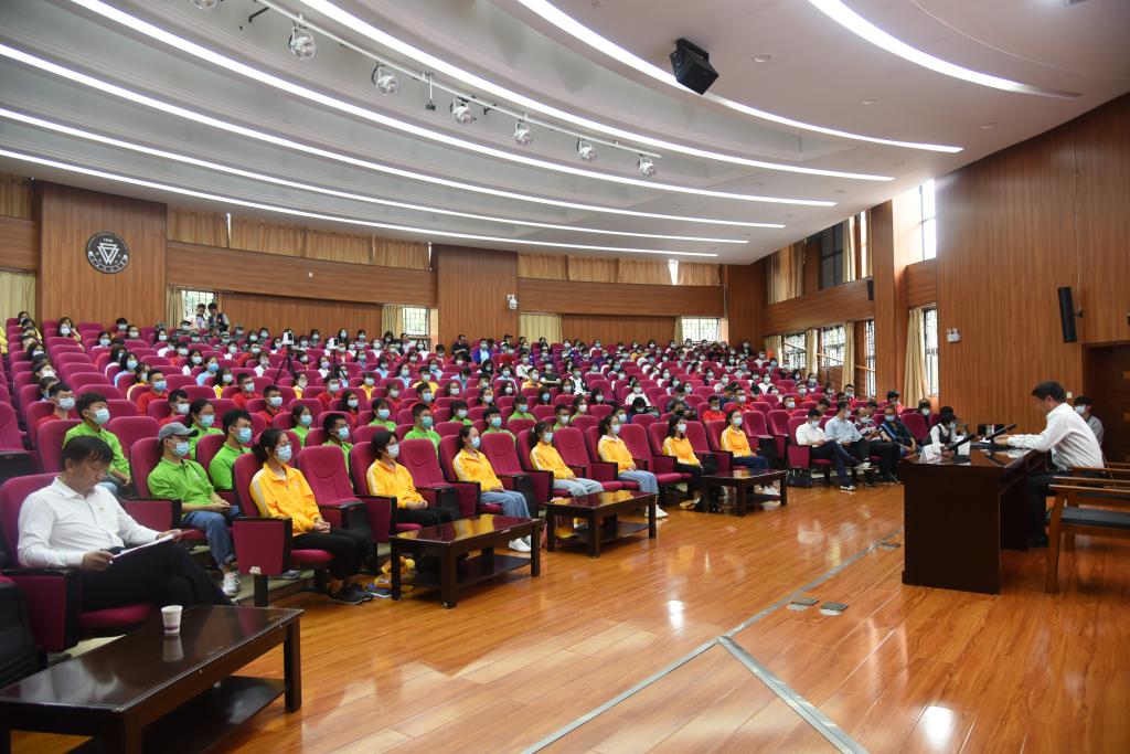 入学第一课是每一位新生大学教育的起点,是每一位同学完成角色转变,适应大学生活的重要一环,也是学校加强思想政治教育工作的重要举措。9月22日下午,校党委饶卫书记在汇学2幢报告厅为2020级新生讲授了题为《增强爱国情 激发强国志 砥砺报国行》的入学第一课。此外,40余个分会场的同学同步网络收看了新生入学第一课。校党委副书记李宏主持了入学第一课。
