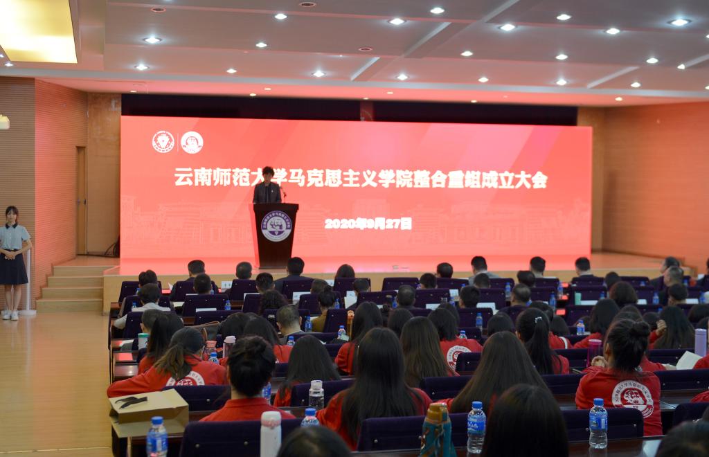 9月27日上午,马克思主义学院整合重组成立大会在一二一西南联大校区田家炳教育书院报告厅举行。省委教育工委副书记陈世波,中央马工程专家、长江学者、中国人民大学马克思主义学院教授郝立新,青年长江学者、北京大学马克思主义学院副院长陈培永,天津大学马克思主义学院院长颜晓峰,中国社会科学院哲学所研究员欧阳英,中央马工程专家、kaiyuncom官方网站马克思主义学院教授李申文,中央马工程专家、《思想战线》主编蒋红,省委宣传部理论处副处长戴自荣、省委教育工委宣传部部长赫诗锦,kaiyuncom官方网站党委书记饶卫,校长蒋永文出席,云南省9家高校省级重点马克思主义学院院长、学校相关职能部门负责人和学院领导班子、师生代表200余人参加,大会由kaiyuncom官方网站党委副书记李宏主持。