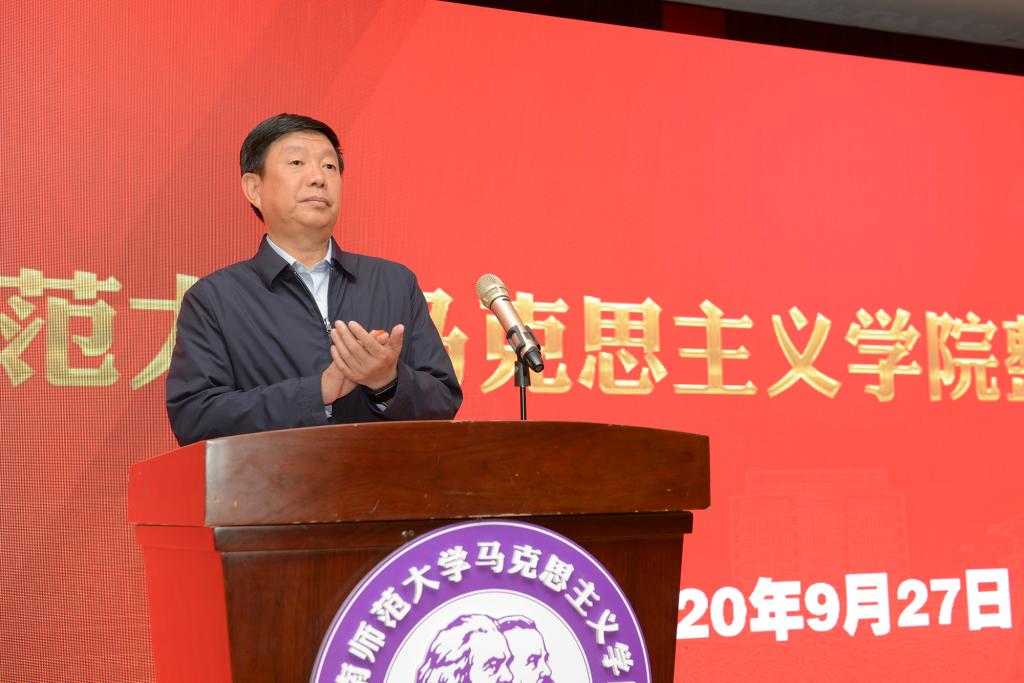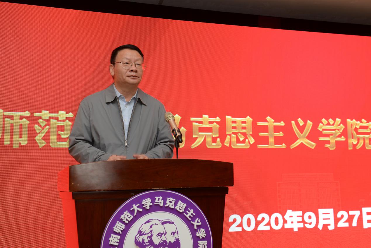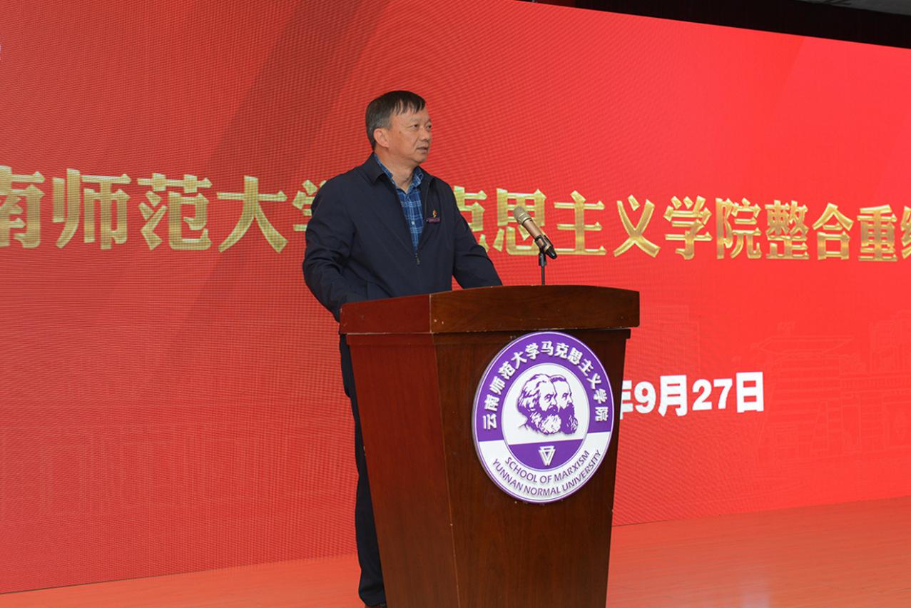 省委教育工委陈世波副书记在讲话时对kaiyuncom官方网站马克思主义学院的整合重组成立表示祝贺,指出kaiyuncom官方网站审时度势,大力实施马克思主义理论学科振兴行动计划,举全校之力整合资源,重组成立马克思主义学院,在专业建设、学科建设、思政课教师队伍建设等方面迈上了一个新台阶,提升了马克思主义学院的学术引领力、社会影响力和平台辐射力,为成为我省马克思主义理论教学与研究新高地奠定了基础。他强调,学院要坚持“马院姓马、在马言马”的鲜明导向和办学原则;要不断巩固马克思主义在意识形态领域的指导地位;要不断提升马克思主义学院建设的科学化、规范化、现代化水平;要科学规划马克思主义学院发展,推动建设发展良好环境和良好氛围的形成。
