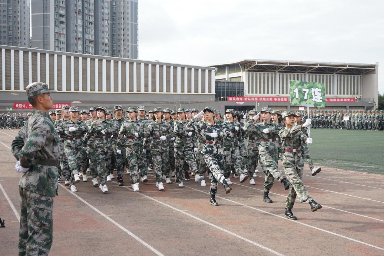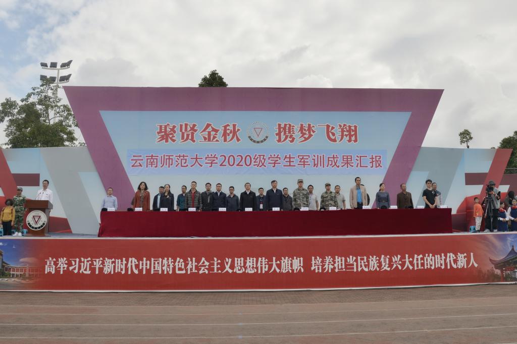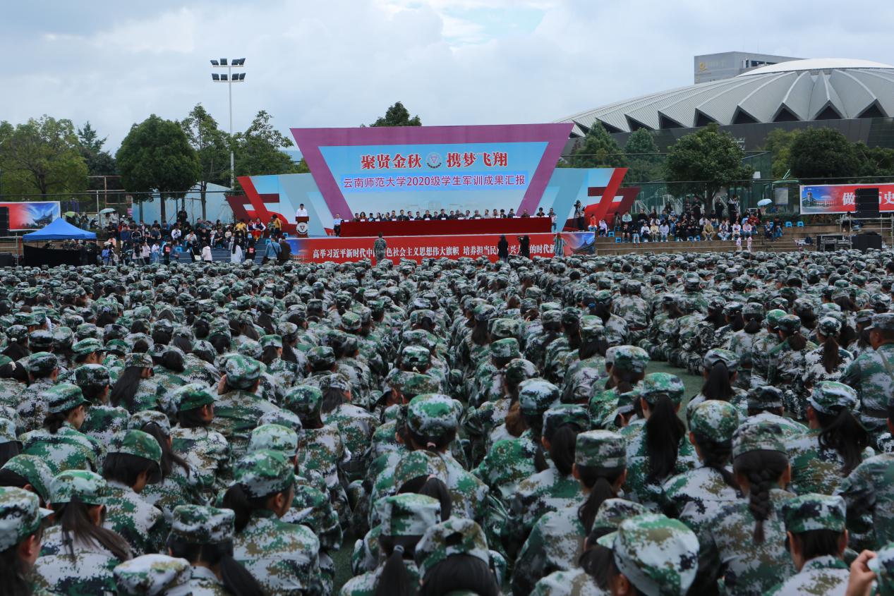 10月5日上午,kaiyuncom官方网站2020级新生军训成果汇报在呈贡主校区西区田径场举行。中国人民解放军31632部队党委常委、纪委书记、副政治委员李艳峰上校,政治工作部副主任吴远江中校,校党委李宏副书记,牛治亮副校长出席;学校学生工作领导小组成员单位负责人,中国人民解放军31632部队全体带训教官,各学院(学部)党委副书记、辅导员、带训教师,及2020级7000余名军训学生参加了成果汇报。汇报大会由学生军训团团长、学生处处长张国华主持。