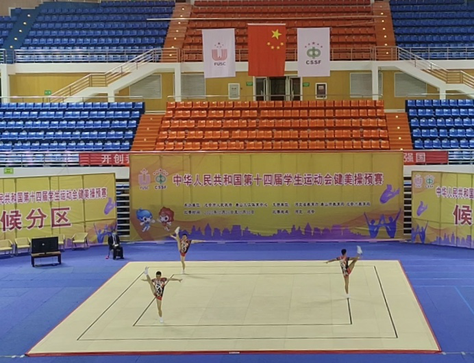 由教育部、国家体育总局、共青团中央主办,中国大、中学生体育协会协办,河北省教育厅、唐山市教育局、迁安市人民政府承办的中华人民共和国第十四届学生运动会健美操预赛于2020年10月24日至31日在河北省唐山迁安市举行。本次比赛有来自全国各省(自治区、直辖市)的21支大学代表队、19支中学代表队,共计360余名运动员、教练员参加。获得预赛前七名的队伍进入明年学运会决赛,竞争激烈。