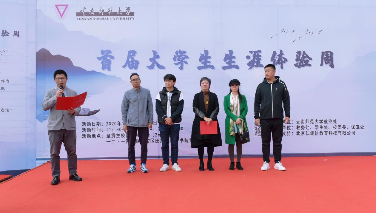 10月26号上午,kaiyuncom官方网站首届生涯体验周活动启动仪式在呈贡校区红烛广场举行。kaiyuncom官方网站就业处处长、创新创业学院办公室主任李红老师、就业处副处长刘文老师,学生处(学生工作部、武装部)副部长李寿星老师,教务处副处长冯洁老师,校团委副书记赵彪老师,各个学院(学部)党委副书记、辅导员老师及300余名学生参加了启动仪式。启动仪式由创新创业学院办公室副主任李映松老师主持。