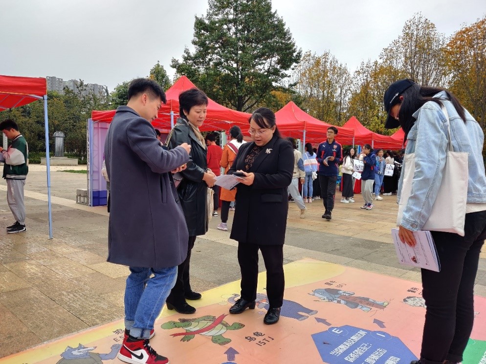 10月30日在西南联大博物馆小广场针对一二·一西南联大校区大一新生同时开展生涯体验周活动,本活动面向全校一年级学生全覆盖,为期一周时间。它将职业生涯规划元素设计成大型户外游戏闯关活动,围绕“我是谁”“我想成为什么样的人”以及“我该如何行动” 13个小关卡进行,学生通过亲身参与相关活动进行自我目标定位、自我探索、职业探索等,可以在实践中了解并开展自己的生涯规划。