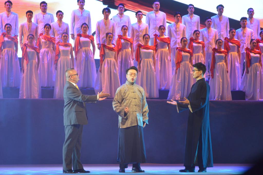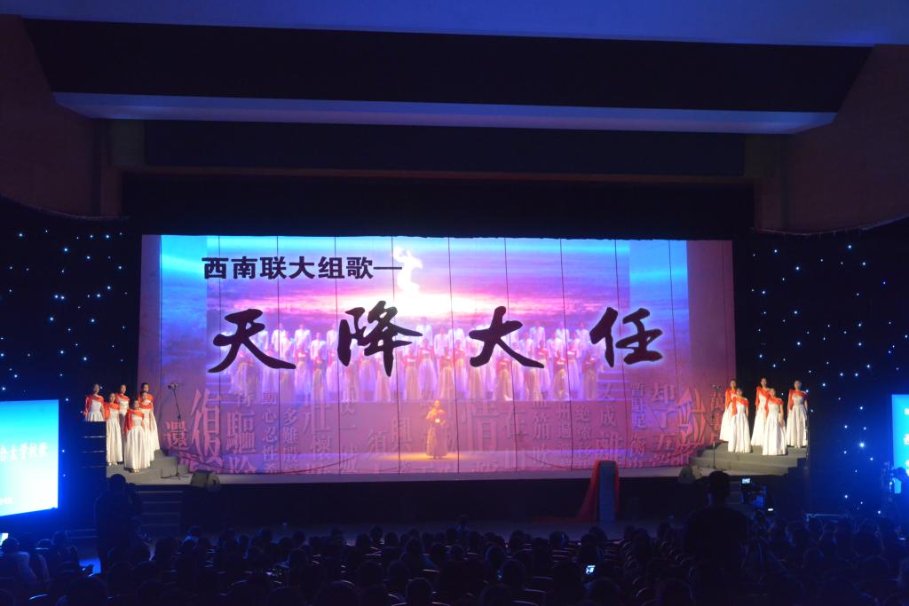 演出在西南联合大学校歌《满江红》中拉开了序幕,歌曲《南渡,南渡》由闻一多先生与女青年学生危急关头“为保留中华文脉准备南迁”的对话导入情景,演绎了三校师生历经艰难险阻,辗转南迁的感人故事;《联大花开》《停课赏雨》《跑警报》《泡茶馆》等情景接连上演,充满浓浓的人文情怀,再现了联大师生克服艰苦条件坚持治学研究,致力育才报国的场景;由西南联大诗人穆旦作词的歌曲《野人山》,重现了联大先辈舍生报国的家国情怀。现场还通过时空对话的方式,以歌曲《天降大任》《我长大,你不老》展现西南联大师生和衷共济,创造教育史不朽奇迹,整台演出迎来阵阵掌声。