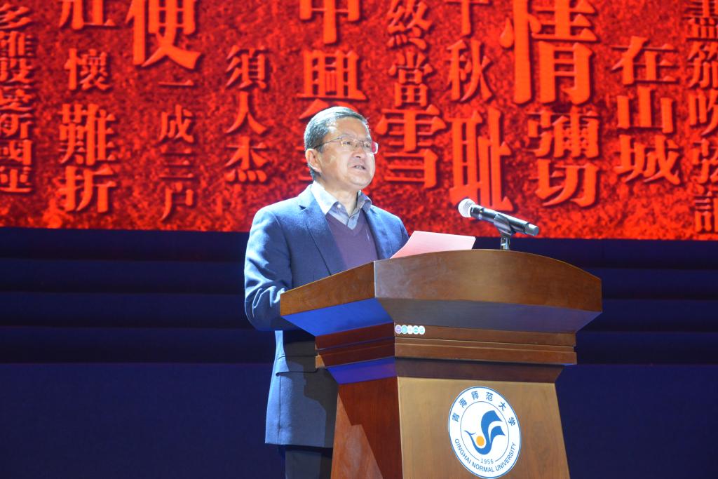 此次演出是kaiyun官网贯彻落实习近平总书记考察西南联大旧址重要指示精神,进一步传承弘扬西南联大爱国主义光荣传统,讲好西南联大教育救国的故事和闻一多先生舍生取义的故事,落实立德树人根本任务,培养有历史感责任感、志存高远的时代新人的一次具体实践;是继去年9月青海师范大学《永怀之歌》话剧赴kaiyun官网交流展演后,两校之间开展的又一文化交流活动。青海师范大学党委书记毛学荣在致辞中对kaiyun官网师生的到来表示欢迎,对青海省委省政府、各厅局单位和各兄弟院校一直以来的关心支持表示感谢。他表示,云贵青藏皆高原,云师青师皆师范。共同的高原地理坐标和师范教育使命为云南师大和青海师大铺就了天然的友谊纽带,矢志追求国家富强的“西南联大”爱国主义精神和“两弹一星”精神为云南师大和青海师大赋予了传承红色基因、打造精神高地的共同责任。青海师范大学将以习近平总书记“教育要同国家之命运、民族之前途紧密联系起来”的重要指示精神为指导,以《西南联大组歌》演出为契机,进一步加强与kaiyuncom官方网站的全方位、宽领域、深层次战略合作,教育报国守初心,立德树人担使命,让西南联大爱国主义精神和“两弹一星”精神在新时代绽放新的光芒和芳华。