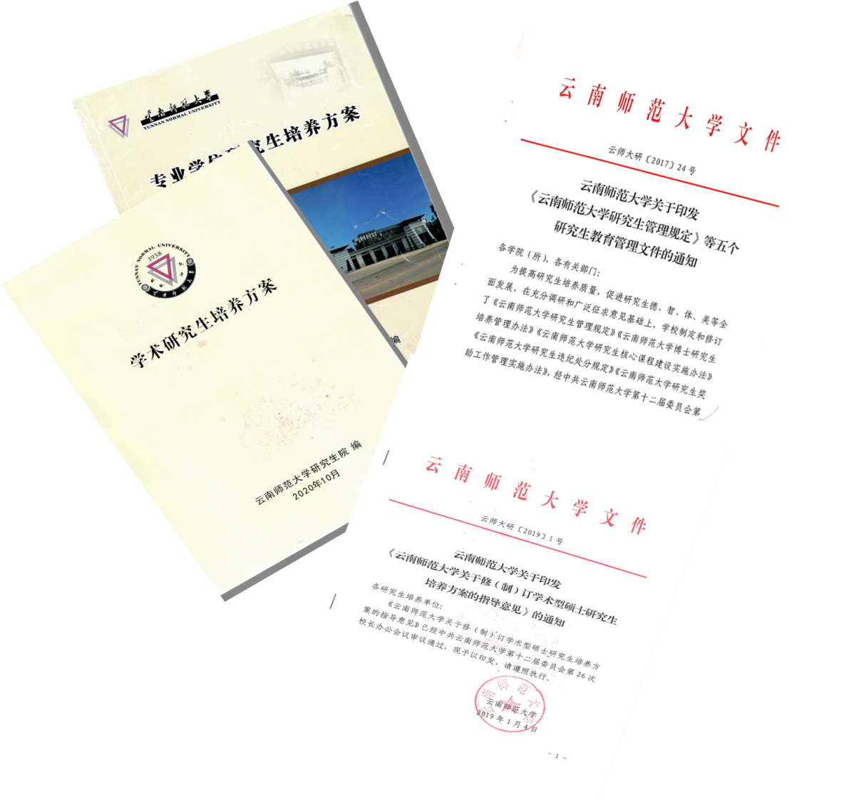 学校为保障研究生培养质量,不断完善人才培养方案。先后制定《kaiyuncom官方网站博士研究生培养管理办法》(云师大研〔2017〕24号)、《kaiyuncom官方网站关于修(制)订学术型硕士研究生培养方案的指导意见》(云师大研〔2019〕1号)。按一级学科成立“研究生培养指导委员会”,拓宽培养口径,修订学术研究生人才培养方案;科学设置课程体系,优化公共课、专业课、实践课等课程结构比例;加强理工科类研究生的人文素养和人文学科类研究生的科学素养,增加跨一级学科课程,目前各培养单位已开设66门(班)课,选课达2175人次;把论文写作指导和职业道德教育等课程作为必修环节纳入研究生培养方案。充分体现了“服务需求、提高质量”的总体要求;并根据各专业学位教育指导委员会的最新要求,对不同类别的专业学位研究生,以“分类培养,双翼齐飞”为思路,修订和调整专业学位研究生培养方案,修订了教育硕士、法律硕士、工程类硕士、农业硕士、公共管理、金融硕士、社会工作硕士、新闻与传播硕士等专业学位研究生培养方案。