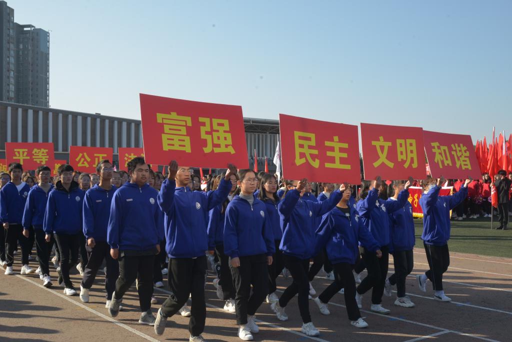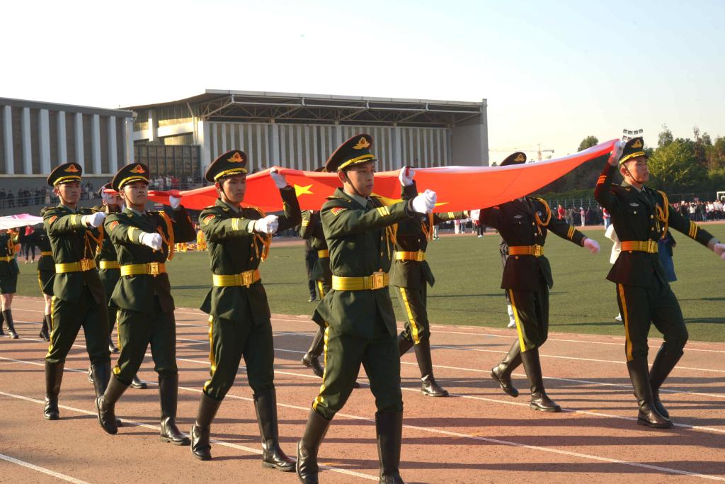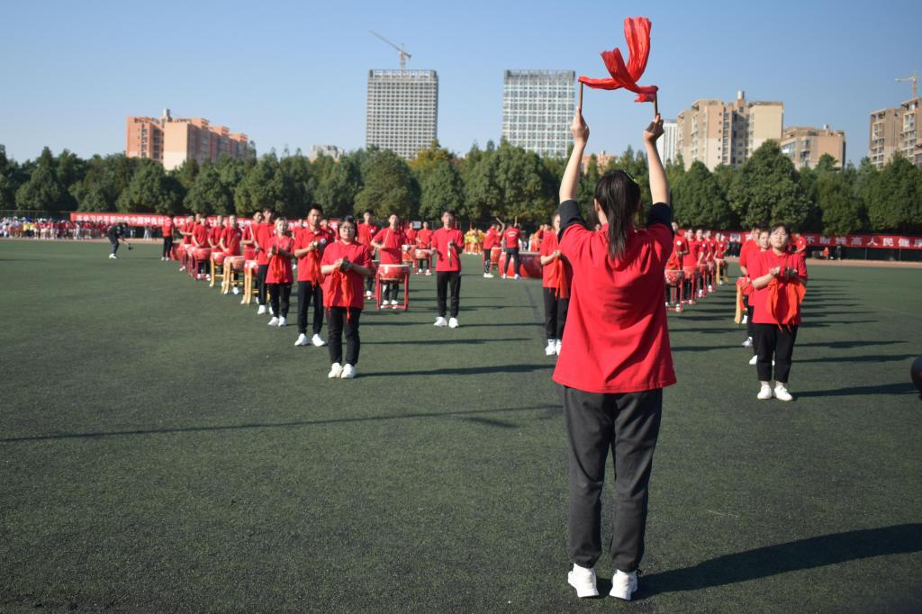 校党委张玮副书记宣布本次运动会正式开幕。随后,威风锣鼓、舞龙舞狮、武术、千人啦啦操等体育表演依次进行,展现了新时代kaiyun官网大学生的青春风采。