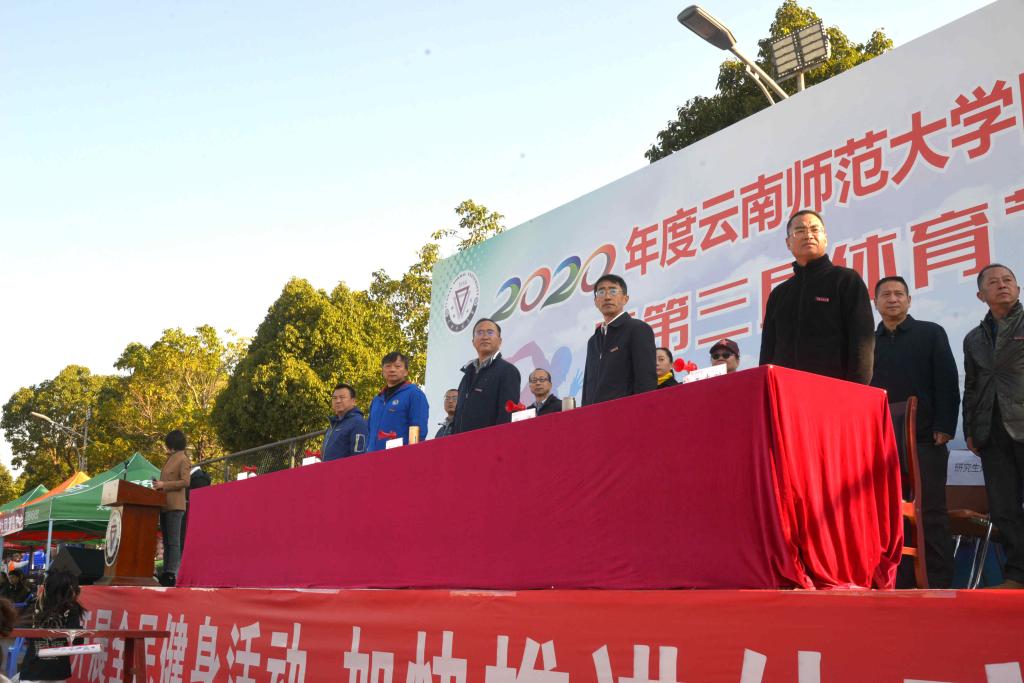 11月12日上午,2020年kaiyuncom官方网站田径运动会暨第三届体育节在呈贡主校区西区体育场开幕。校长蒋永文,党委副书记张玮、李宏,党委委员、纪委书记王志刚,党委委员、校长助理乜勇以及各部门、各学院负责人出席开幕式。体育场人声鼎沸,气氛热烈。