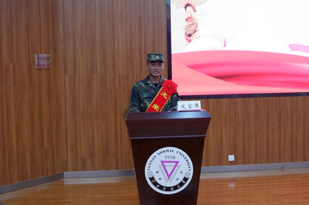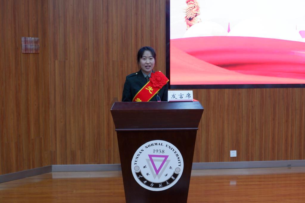 退役复学女生代表张睿贤同学讲述了在西藏服役的经历,表示退役后将传承老西藏精神,刻苦学习,用青春和热血书写人生新的篇章。