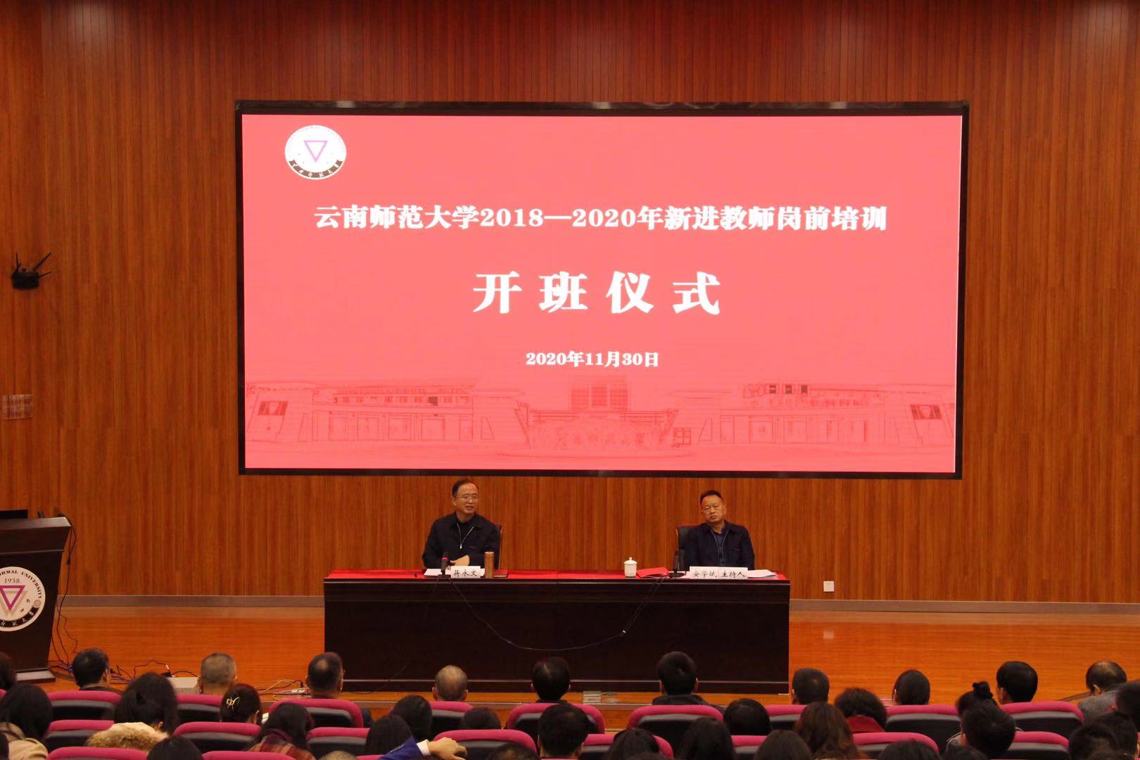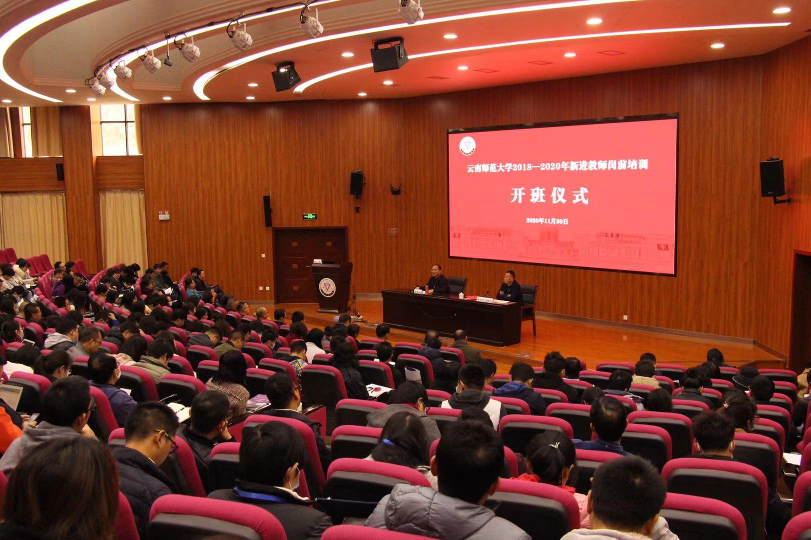 11月30日上午,为使新进教工更好地履行岗位职责,帮助新进教工尽快完成角色转换,做好职业生涯规划。根据《高等学校教师培训工作规程》和《高等学校教师岗前培训暂行细则》要求,学校2018-2020年新进教师岗前培训开班仪式在呈贡主校区汇学楼2幢101报告厅举行。校长蒋永文出席并做了动员讲话,仪式由副校长安学斌主持。相关职能部门负责人、各教学单位教学副院长、2018-2020年新进教师共240余人参加了开班仪式。